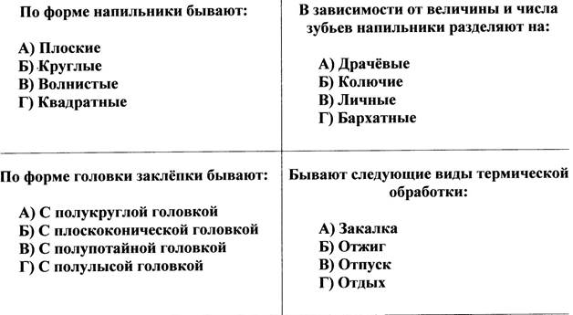 2. Какой формы бывают напильники? – Напильники бывают плоские, полукруглые, круглые, трёхгранные,ромбические, квадратные.